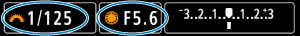 - Skontrolujte indikátor úrovne expozície a nastavte požadovanú rýchlosť uzávierky hodnotu clony.