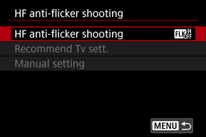 Vyberte možnosť [HF anti-flicker shooting/Snímanie s potlačením vplyvu blikania].