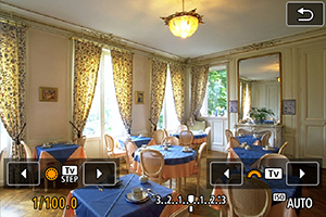môžete zvýšiť rýchlosť uzávierky nastavenú podľa odporúčaného nastavenia Tc (×2, ×3, ×4 atď.) alebo ju znížiť (1/2×, 1/3×, 1/4× atď.).