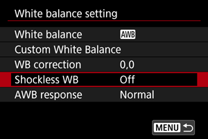 : White balance setting/Nastavenie vyváženia bielej] (, ).