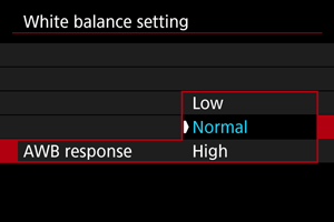 Môžete nastaviť citlivosť automatického vyváženia bielej. Vyberte z troch úrovní citlivosti podľa podmienok snímania.