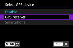 Vyberte možnosť [GPS receiver/Prijímač GPS].