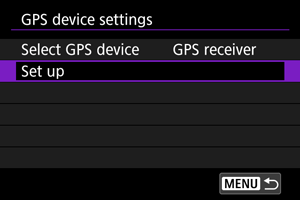- Podrobné informácie o položke [Set up/Nastavenie] nájdete v návode na používanie zariadenia GP-E2.