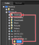 Pretiahnite priečinok [DCIM] na karte (napr. v priečinku [EOS_DIGITAL]) do priečinka [Desktop/Pracovná plocha].