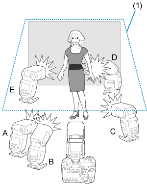 When using an EOS DIGITAL camera released in and after 2012, you can shoot in a different flash mode set for each firing group with up to 5 groups (A, B, C, D, and E).