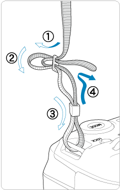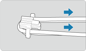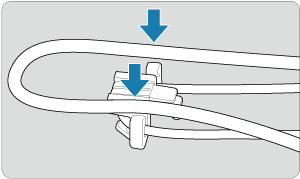 Povlecite konec vrvice s spodnje strani skozi uho, nato jo povlecite skozi sponko, kot kaže slika. Napnite vrvico, tako da ni ohlapna, in preverite, ali se ne izmakne iz zaponke.