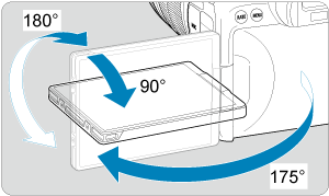 • Ko je zaslon obrnjen navzven, ga lahko zavrtite navzdol ali navzgor ali tako, da je obrnjen proti osebi, ki jo fotografirate.