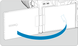 • Če je na terminal fotoaparata priključen kabel, je kot za vrtenje navzven obrnjenega zaslona omejen.