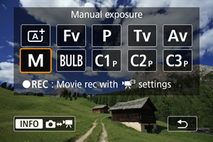 Če je za fotografiranje z ročno osvetlitvijo ISO občutljivost nastavljena na [AUTO/SAMODEJNO], lahko nastavite popravek osvetlitve () na naslednji način: