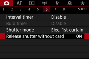 Fotoaparat lahko nastavite, tako da ne zajame fotografije, če v njem ni vstavljene kartice. Privzeta nastavitev je [Enable/Omogoči].