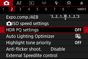 Nastavitve HDR PQ omogočajo fotoaparatu generiranje HDR slik v skladu s specifikacijo PQ, določeno v ITU-R BT.2100 in SMPTE ST.2084. (Dejanski prikaz je odvisen od zmogljivosti monitorja.)