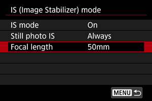 - Možnost [Focal length/Goriščna razdalja] ni prikazana, če je na fotoaparat pritrjen objektiv, ki podpira komuniciranje z objektivom.
