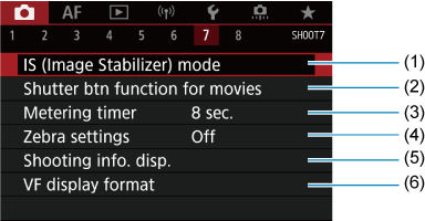 - (5) Shooting info. disp./Prikaz podatkov o snemanju
