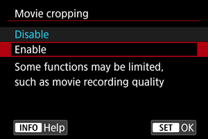 Snemanje filmov z RF-S ali EF-S objektivi ima enak učinek kot ta funkcija izrezovanja filma.