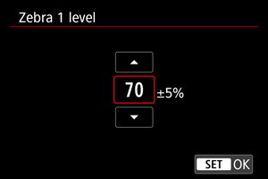 - Če nameravate nastaviti [Zebra pattern/Zebrasti vzorec], priporočamo vnaprejšnje preverjanje ravni prikaza zebrastega vzorca.