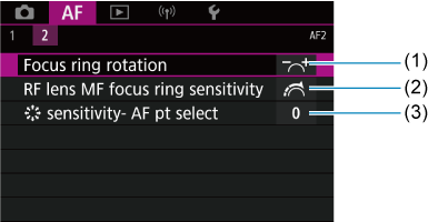 - (3) RF lens MF focus ring sensitivity/Občutljivost obročka za MF ostrenje za RF objektiv