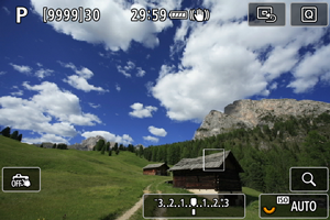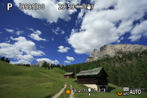 - Naslednji opisi veljajo za fotoaparat z delovanjem AF nastavljenim na [One-Shot AF/AF za en zajem] (). Če je nastavljeno [Servo AF] (), se točka AF obarva modro, ko je dosežena izostritev.