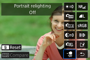 Če uporabljate fotoaparat za obdelavo RAW slike () za slike, ki ste jih zajeli z omogočeno funkcijo Dual Pixel RAW/RAW z dvojnimi slikovnimi pikami (), lahko za popravek slike uporabite podatke o dvojnih pikah in podrobne podatke za obraz.