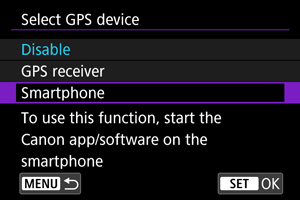 Slike lahko označite z geografskimi podatki prek GPS sprejemnika GP-E2 (v prodaji posebej) ali pametnega telefona, združljivega z Bluetoothom.