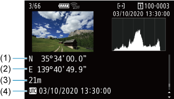 Podatek o lokaciji, dodan na posnetke, lahko preverite na zaslonu s podatki o fotografiranju ().