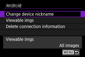 Če brišete podatke o povezavi s pametnim telefonom, povezanim v par, izbrišite tudi podatke o fotoaparatu, ki so registrirani v pametnem telefonu ().
