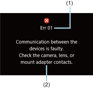 Ko se pojavi napaka v delovanju fotoaparata, se izpiše sporočilo o napaki. Upoštevajte na zaslonu prikazane napotke.