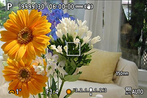 - Če izostritev ni dosežena, se točka AF obarva oranžno. Če uporabljate način One-Shot AF/AF za en zajem, ponovno uredite kompozicijo posnetka in poskusite ponovno izostriti ali preberite poglavje Pogoji fotografiranja, ki otežujejo ostrenje.