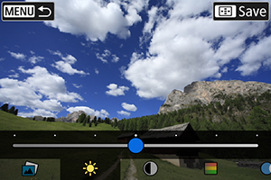 - Učinke, kot so [Brightness/Svetlost] ali [Contrast/Kontrast], lahko izberete s pritiskom na gumb