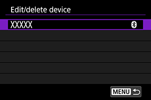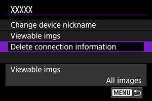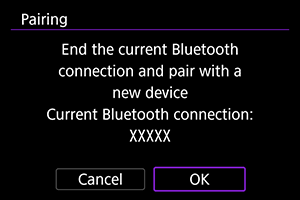 - Če so podatki o povezovanju v par za predhodno povezane fotoaparate ohranjeni na vašem pametnem telefonu, bo to preprečilo, da bi se pametni telefon povezal v par s tem fotoaparatom. Preden ponovno poskusite vzpostaviti povezavo v par, odstranite podatke o povezovanju v par za predhodno povezane fotoaparate z zaslona za nastavitve Bluetooth na vašem pametnem telefonu.