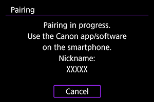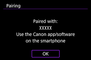 - Povezava v par je zdaj zaključena in fotoaparat je povezan s pametnim telefonom prek funkcije Bluetooth.
