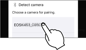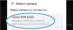Zaženite Camera Connect in se dotaknite fotoaparata, da vzpostavite povezavo prek Wi-Fi.
