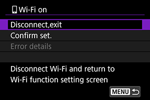 Wi-Fi vključeno] izberite [Disconnect,exit/Prekinitev povezave,izhod].