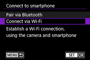 - Za ponovno povezavo prek Wi-Fi zaženite Camera Connect in se dotaknite funkcije, ki jo boste uporabljali.