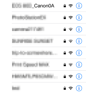 - Vključite funkcijo Wi-Fi na pametnem telefonu, nato se dotaknite SSID (ime omrežja), ki ste ga preverili v koraku 6 v Koraki na fotoaparatu (1).