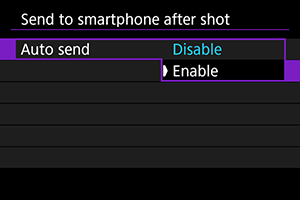 Izberite [Send to smartphone after shot/Pošlji v pametni telefon po zajemu].