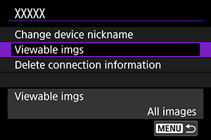 - Če je možnost [Viewable imgs/Slike za ogled] nastavljena na karkoli drugega razen [All images/Vse slike], daljinsko fotografiranje ni mogoče.