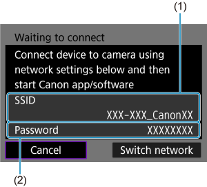 - Za geslo vpišite geslo, ki ste ga preverili v koraku 6 v Koraki na fotoaparatu (1).
