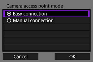 - Za postavko [Camera access point mode/Način fotoaparata kot dostopne točke], prikazano v koraku 5, glejte Način fotoaparata kot dostopne točke.