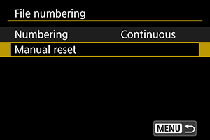 Če oštevilčenje datotek ponastavite ročno, se samodejno ustvari nova mapa in oštevilčenje posnetkov, shranjenih v to mapo, se začne z 0001.