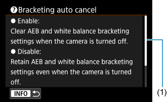 . S ponovnim pritiskom na gumb izstopite iz prikaza pomoči. Za pomikanje po zaslonu, ko se na desni prikaže drsni trak (1), zavrtite regulator