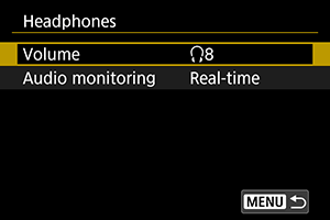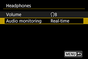 Med snemanjem filma lahko izberete zvok, ki bo oddajan prek izhoda na slušalkah. Za zmanjšanje šuma pri snemanju zvoka nastavite funkcijo [Audio noise reduc./Odpravljanje šuma zvoka] ().