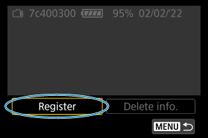 - V Registriranje baterij v fotoaparat izberite [Delete info./Izbris podatkov] v koraku 2.