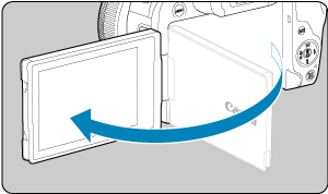 - Če je na terminal fotoaparata priključen kabel, je kot za vrtenje navzven obrnjenega zaslona omejen.
