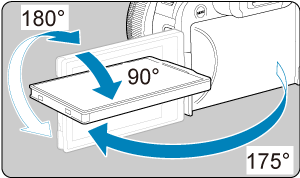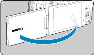- Ko je zaslon obrnjen navzven, ga lahko zavrtite navzdol ali navzgor ali tako, da je obrnjen proti osebi, ki jo fotografirate.