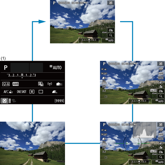 - Uporablja se za postopke, kot so nastavitev občutljivosti ISO, načina zajemanja, delovanja AF, izravnave beline in popravka osvetlitve z bliskavico.