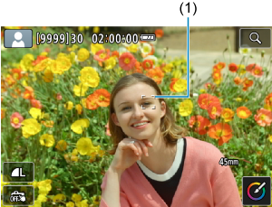 - Pri nekaterih pogojih fotografiranja je lahko na predmetu posnetka prikazana točka AF (1).