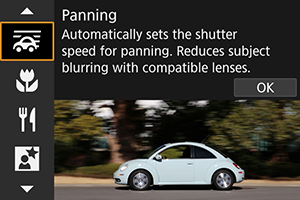 - Vaša izbrana raven učinka panoramskega drsenja morda ne bo uporabljena pri fotografiranju v močni svetlobi (na primer ob sončnih poletnih dneh) ali če fotografirate počasi premikajoče se predmete.