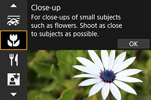 Uporabite način [] (Close-up/Bližnji posnetek) za bližnje posnetke drobnih predmetov, na primer cvetic. Če želite, da bodo majhni predmeti videti večji, uporabite makro objektiv (v prodaji posebej).