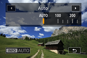 - Če je izbrana možnost [AUTO/SAMODEJNO], s pritiskom na gumb zaklopa do polovice prikažete dejansko nastavljeno občutljivost ISO.