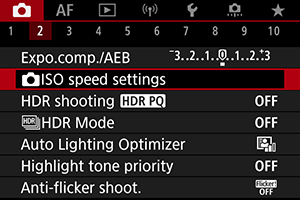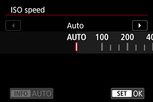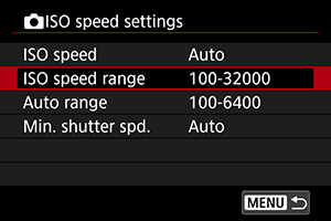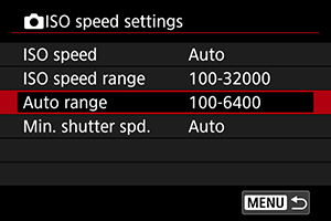 Izberite [ISO speed range/Razpon ISO občutljivosti].